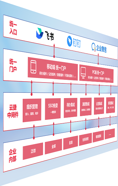对协作平台提供支持服务,,,,支持企业应用与协作平台对接,,包含组织同步、、、、消息集成、、、待办集成等。。。支持目前主流的协作平台:钉钉、、、企微和飞书。。